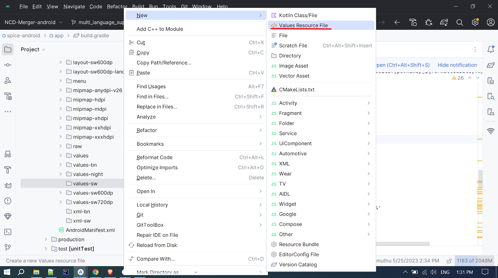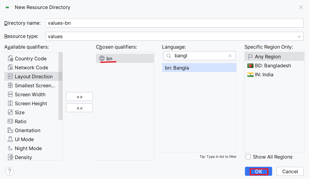 * "values-bn" will be created inside the res folder.