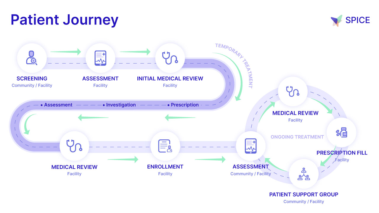<figure><img src="https://1478837505-files.gitbook.io/~/files/v0/b/gitbook-x-prod.appspot.com/o/spaces%2Fc8r5CWDYQD5YGrlFur8R%2Fuploads%2Fgit-blob-1b142bca4c2c98e25b9c0a9e98bbc80ca32a080d%2FSPICE-PatientJourney.jpg?alt=media" alt="" width="563"><figcaption><p>SPICE Patient Journey</p></figcaption></figure>